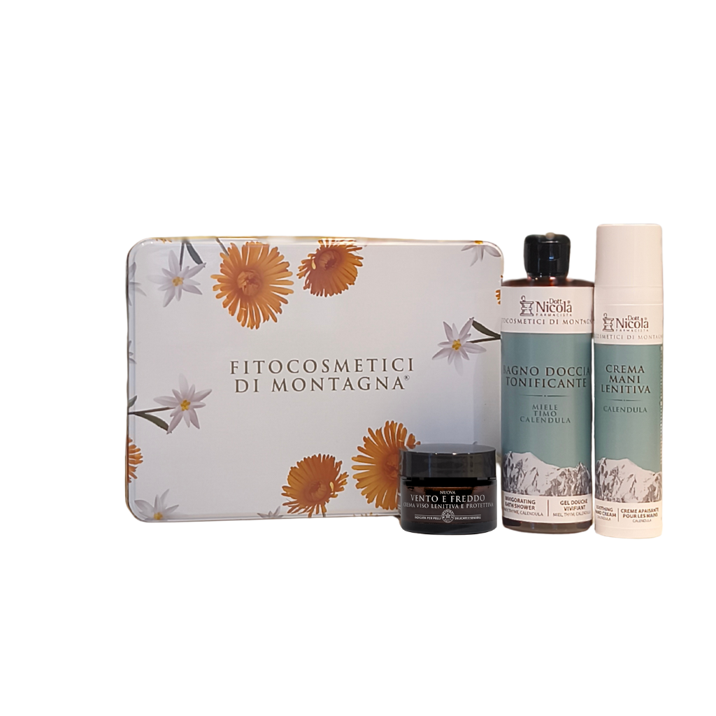 | Come usare | Crema mani idratante – Stella alpina: Distribuire in modo uniforme sulle mani fino a completo assorbimento. Bagno doccia tonificante – Miele, timo: Distribuire in modo uniforme su tutto il corpo e risciacquare sotto l'acqua Shampoo protettivo – Stella alpina: Distribuire sul cuoio capelluto delicatamente, ideale per tutti i tipi di capelli |